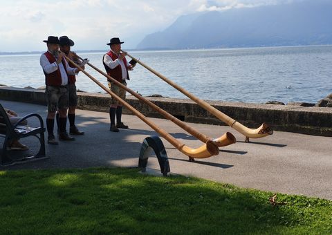 Wir verlassen heute die Region am Genfer See und fahren mit dem GoldenPass Express von Montreux aus durch die liebliche Landschaft um Greyerz, die Pays d'Enhaut, die bekannt ist für ihre zahlreichen Käsereien, nach Gstaad im Berner Oberland, dem Nobelort für die „Schönen und Reichen“. Die Waggons unseres Zuges sind der Belle Epoque der 30er Jahre nachempfunden: weiche Sitzpolster, verschnörkeltes Interieur, ein besonderes Erlebnis.