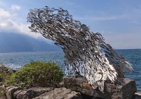 Weiter geht's nach Montreux. Deren Lage am Genfer See, auch Waadtländer Riviera genannt, am Fuße der umliegenden Weinberge, macht die Stadt für Urlauber, Touristen und auch reiche Nichtstuer begehrenswert. Wir bummeln entlang der prachtvoll angelegten Uferpromenade. Hier erinnert uns die Statue Freddy Mercurys an dessen Auftritte in der Stadt während der seit 1967 alljährlich stattfindenden Montreux-Jazz-Festivals.