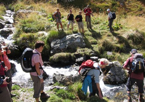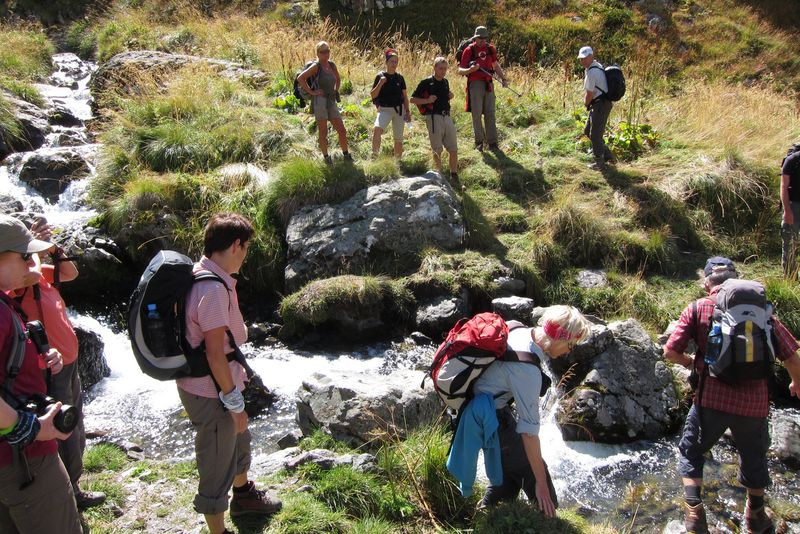 Für unsere Wanderungen sind leichte bis klassische Wanderschuhe / Bergstiefel erforderlich, das entspricht z.B. beim Schuhhersteller Meindl den Kategorien A/B und B. Wichtig sind eine gute Passform sowie griffige und rutschfeste Profilsohlen. Außerdem sollten sie gut eingelaufen und nicht zu schwer sein. Ob sie auch wasserdicht sein müssen, ist Geschmackssache. Ein guter Lederschuh OHNE Membran tut es auch.
