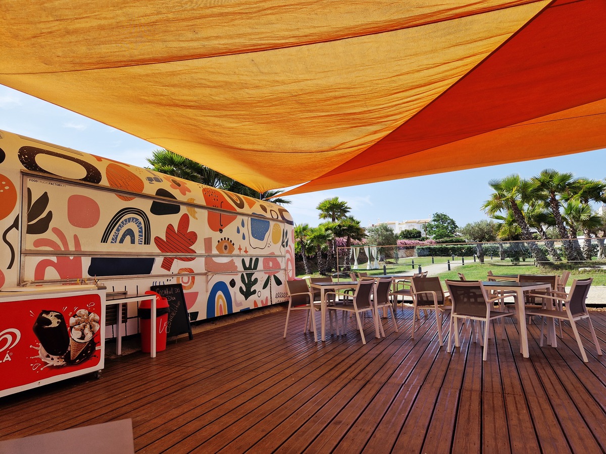 In die gepflegte Gartenanlage sind ein Swimmingpool mit Liegen, Schirmen und 3 Cabanas (kostenpflichtig) eingebettet. Für kühle Getränke und Snacks steht eine Poolbar in Form eines Foodtruck mit überdachter Terrasse zur Verfügung.