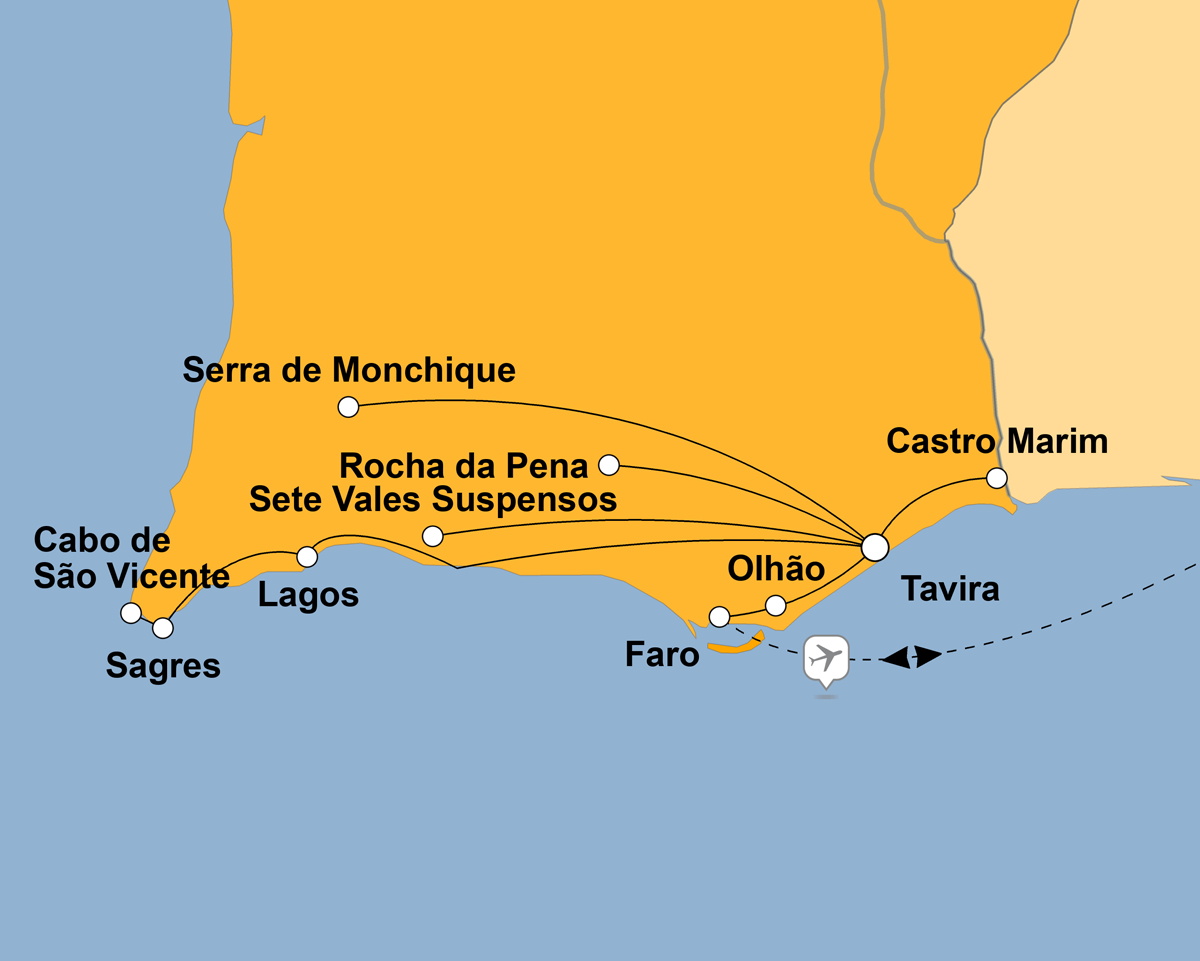 - Stadtrundfahrten/-gänge: Faro, Olhão, Vila Real de St. António, Castro Marim, Lagos, Tavira, Sagres