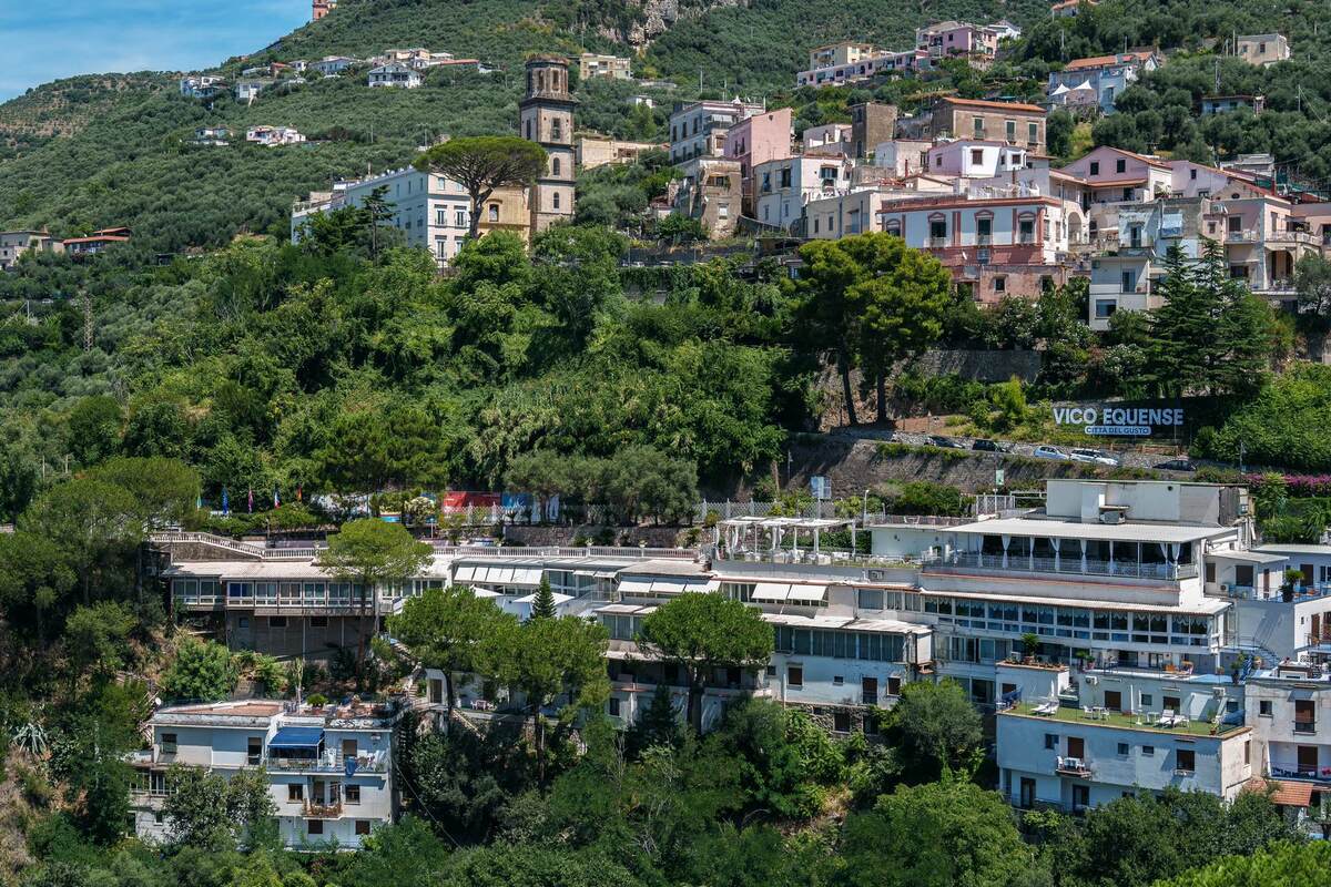 Das Hotel Oriente thront spektakulär auf einer Klippe oberhalb des Golfs von Neapel und bietet traumhafte Ausblicke auf das Meer und die Küste von Sorrent. Der malerische Ort Vico Equense mit kleinen Gassen, Geschäften und Cafés liegt nur wenige Gehminuten entfernt.