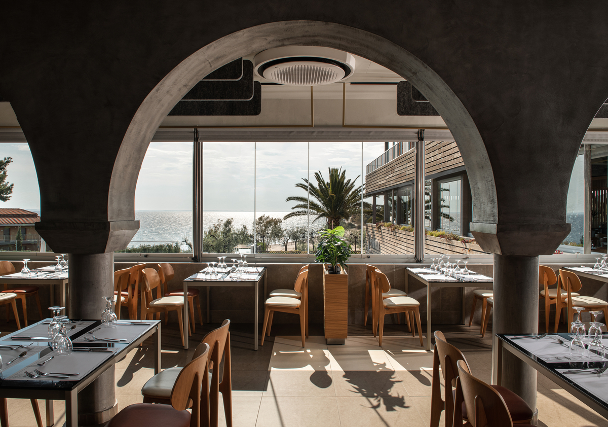 Das Hotel ist umgeben von Pinienwäldern und Olivenhainen, der Badestrand am azurblauen Meer ist nur 50 Meter entfernt.