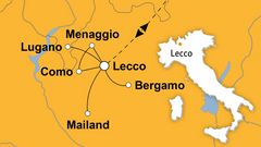 Im bequemen Reisebus erreichen Sie Ihren Urlaubsort Lecco an der Südspitze des östlichen Arms am Comer See, wo der Fluss Adda den See verlässt. Ihre Gäste begeistert die Stadt mit Vielseitigkeit und vor allem mit einem malerischen Panorama aus See und Bergen. Die sehenswerte Altstadt lädet mit einer weitläufigen Piazza zwischen Uferpromenade und Fußgängerzone sowie zahlreichen Café, Konditoreien, Restaurants und Geschäften zum Bummeln und Verweilen ein.