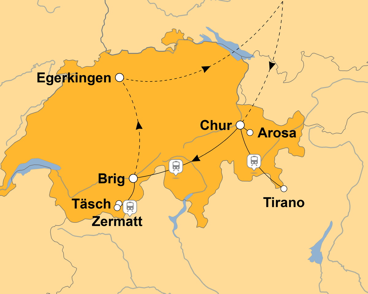 - Aufenthalte: Arosa, Zermatt, Chur und Tirano (IT), Genfer See, Gruyères