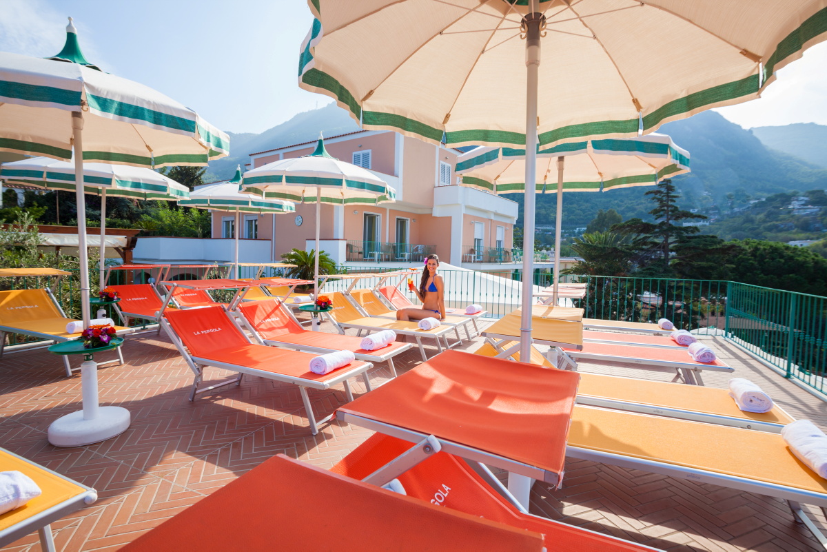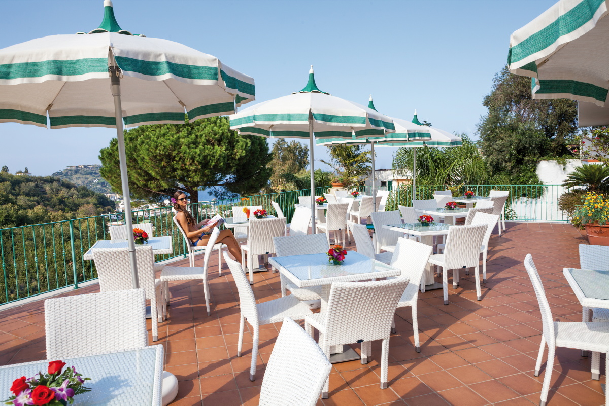 Lage & Ausstattung: Das familiär geführte Hotel ist äußerst beliebt und liegt mit schönem Panoramablick über das Meer oberhalb des Ortes. Die Besitzer sind herzliche Gastgeber und geben dem Traditionshotel eine persönliche Note. In der treppenförmig angelegten Gartenanlage befinden sich gleich mehrere Thermalpools. Liegen und Sonnenschutz stehen in vielen Bereichen kostenlos zur