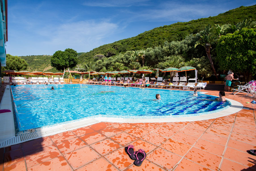 Das Restaurant serviert klassische italienische Küche und verfügt über eine große Terrasse, welche in den Garten ragt. In der etwa 4 Hektar großen Park- und Gartenlandschaft ist ein großer Pool eingebettet. Zudem verfügt das Hotel über ein eigenes Tauchzentrum. Liegen und Sonnenschirme stehen Ihnen am Privatstrand in begrenzter Anzahl kostenfrei zur Verfügung. Diverse Sportfelder für Beachvolleyball, Fussball und Tischtennis sind zudem Teil der weitläufigen Anlage.