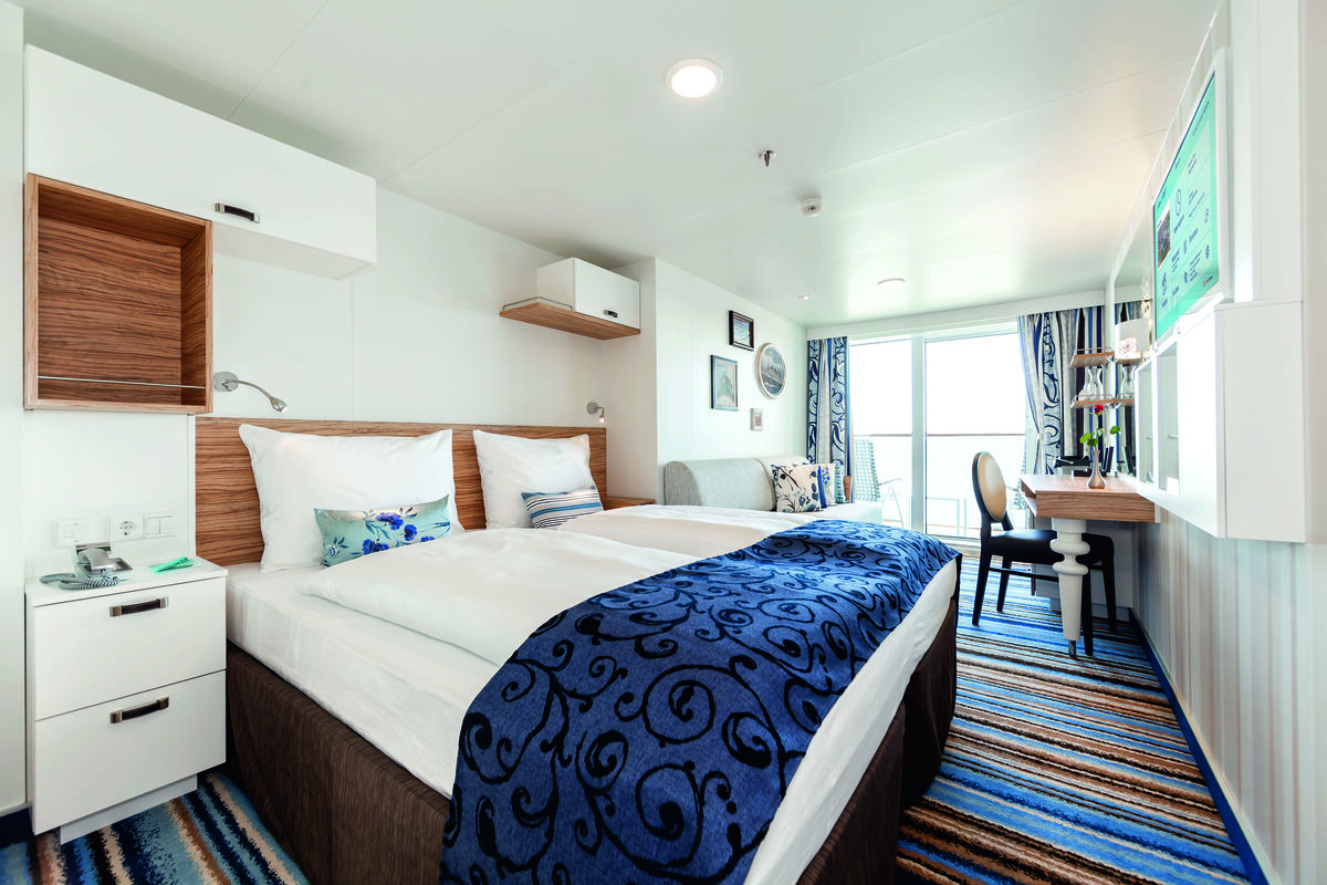 Nach der Taufe am 12. Juni 2014 ist die Mein Schiff 3 zur Jungfernfahrt und in ihr erstes Fahrtgebiet aufgebrochen. Bei über 80% Balkonkabinen haben Sie die Weite des Meeres fast immer im Blick. Noch mehr Weite liefert der Blaue Balkon unserer Diamant-förmigen Heckfassade. Gute Fahrt!