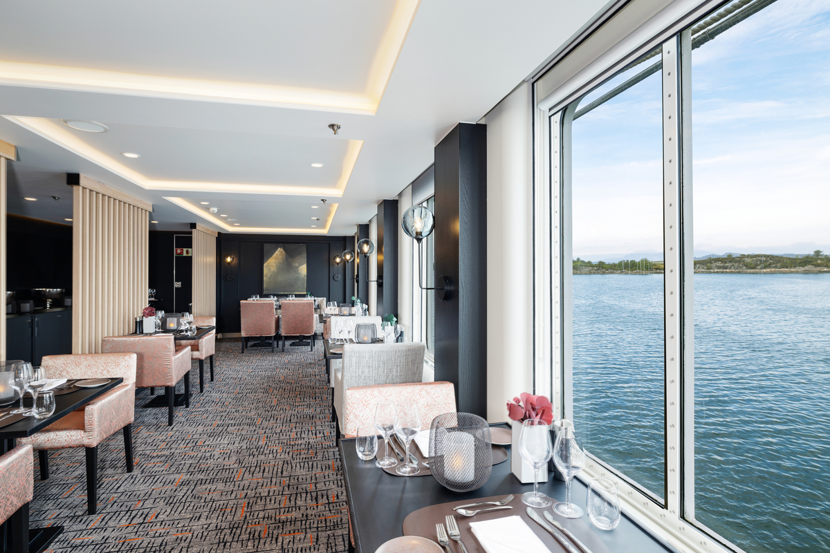 Genießen Sie den Wellnessbereich mit Fitnessraum, Behandlungsräumen und Sauna und den Pool und die Whirlpools auf Deck 7. In den Restaurants werden Sie mit frrischen Zutaten aus Norway's Coastal Kitchen verwöhnt.