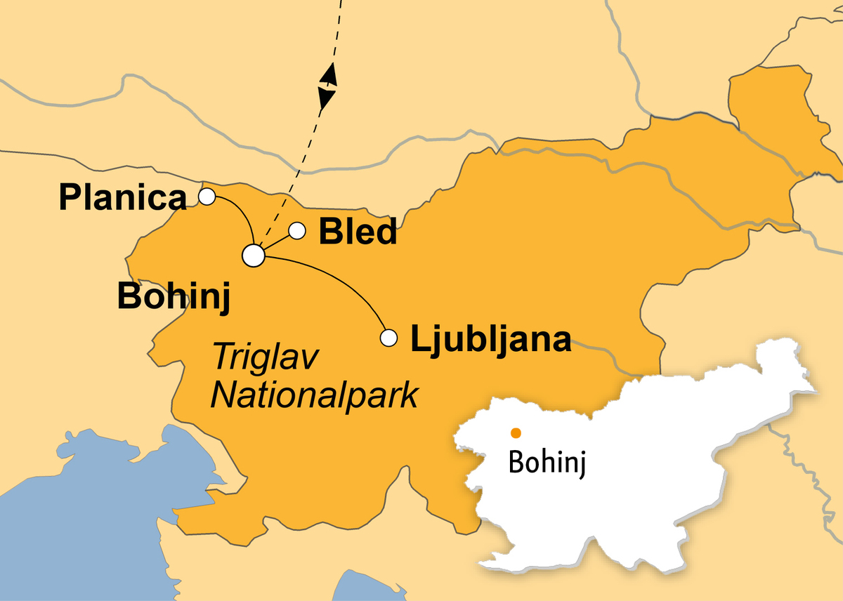 Über Bergwiesen und durch Wälder führt uns der Weg vom Skiflugort Planica in das von Gletschermoränen geformte Tamar Tal. In Gedanken an die Biathlon-Athleten, die hier im Winter ihre Weltcups austragen, genießen wir unsere Wanderung auf der Hochebene Pokljuka. Idyllisch spiegelt das Wasser des Bohinjer Sees den hoffentlich blauen Himmel, wenn wir an seinem Ufer entlang auf leichten Wegen zum Wasserfall Savica gehen. Duftender Wald, Vogelgesang und das Rauschen von klaren Bächen begleiten uns auf unseren Wanderungen im schönen Slowenien.